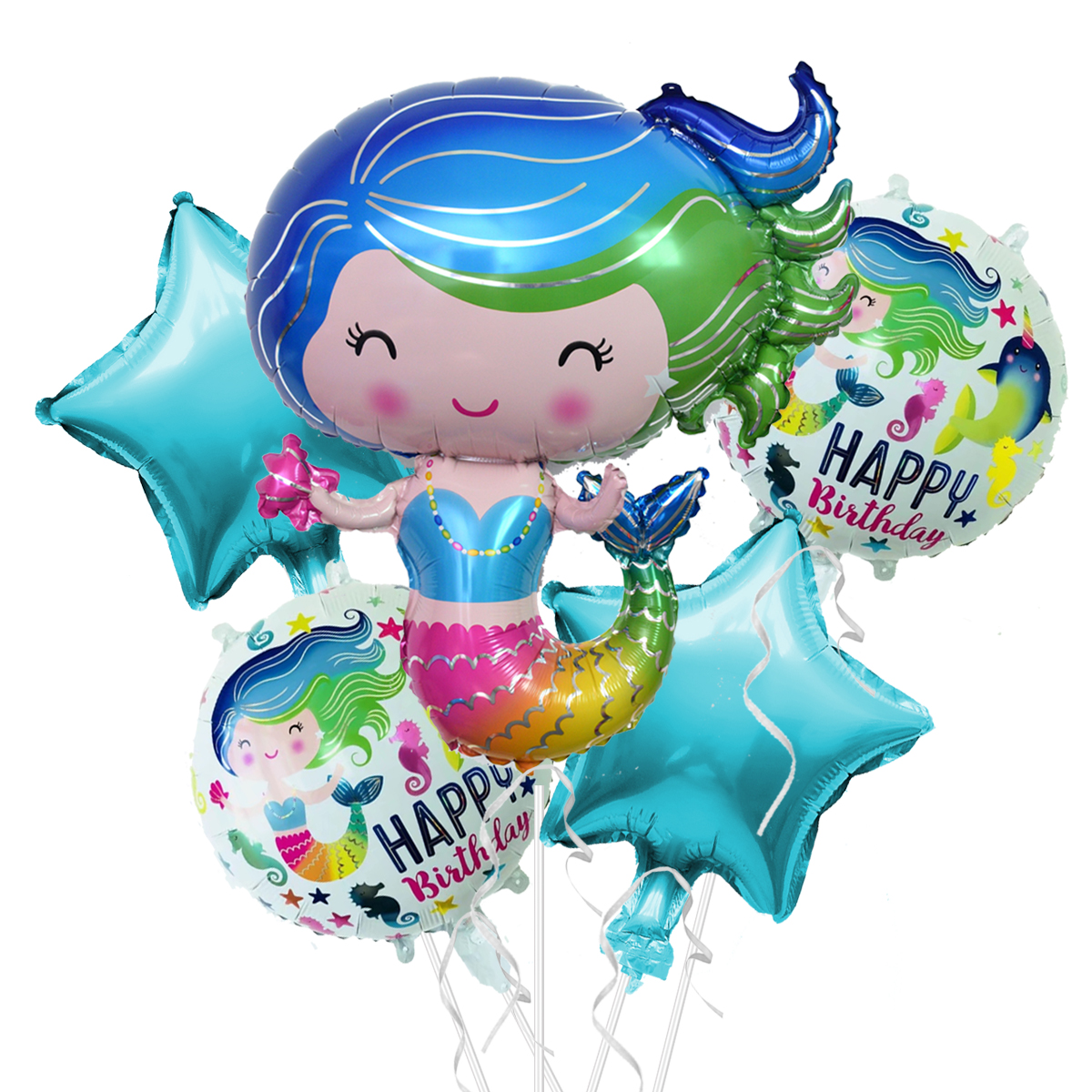 Add a touch of magic with this Mermaid Ariel Helium Balloon Bunch! This Disney princess helium balloon set is a perfect decor idea for a mermaid themed party. The 5pcs set of Mermaid balloons is perfect for adding that magical feel to your loved one’s birthday party.