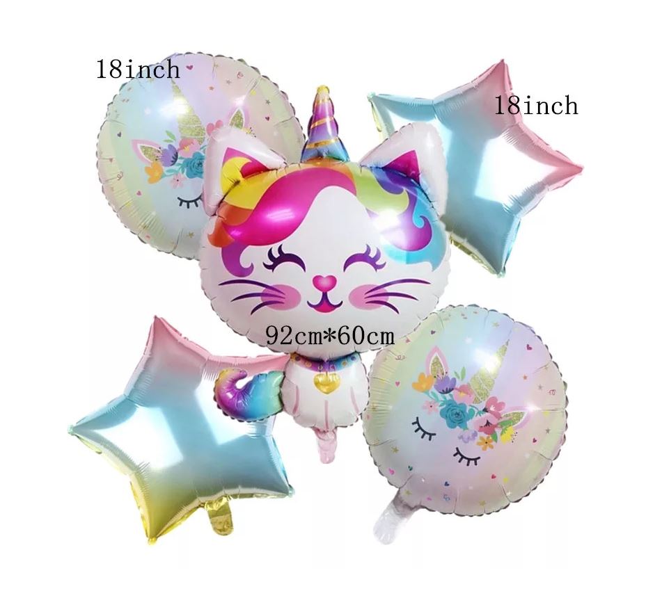 5pcs set Unicorn Cat Foil Balloon